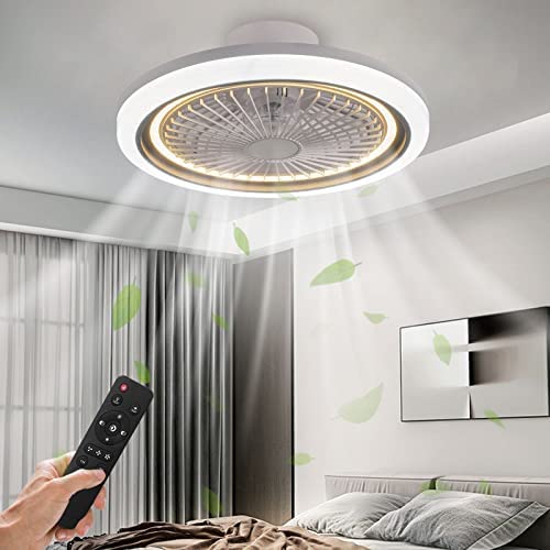 PINFM 21in Enclosed Ceiling Fan with Lights,72W Smart Ceiling Fan ,Dimmable LED 3 Color Low Profile Ceiling Fan with lights Remote Control,3 Speed Wind(1/2h) Timing,For Living Room.