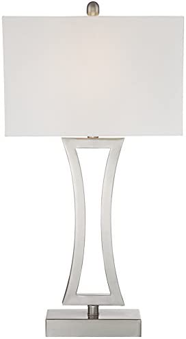 Roxie Modern Contemporary Table Lamps 31″ Tall Set of 2 Brushed Nickel Metal Off White Rectangular Shade for Living Room Bedroom House Bedside Nightstand Home Office Entryway – 360 Lighting