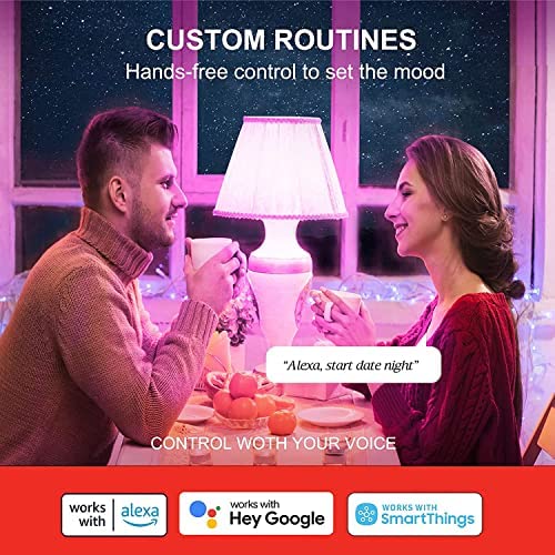 Voice Control: Color changing smart bulbs that work with Alexa and Google Home. Control your smart light bulb via voice commands to turn your smart bulbs on/off, create colorful mood scenes, adjust brightness and more, e.g. Switch on the Alexa light bulbs before getting out of bed, dim the smart lights from the couch to watch a movie.