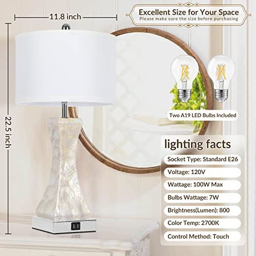 Set of 2 Table Lamps for Bedrooms, Touch Control Tall Bedside Nightstand Lamp Sets for Living Room Reading Table, 3-Way Dimmable White Coastal End Table Desk Lamps, Warm White, 2700K LED Bulb Included