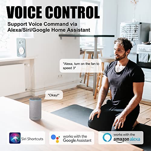 【Smart Control:APP/Remote/Voice】This smart ceiling fan enable 3 way to control: APP control,remote control,voice control via Google assistant & Alexa & Siri Shortcuts. You can easily control the ceiling fan via a voice command or APP from any corner in the house. [Please keep Bluetooth turned off before connecting the APP].