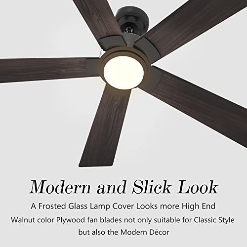 【BOTH OUTDOOR AND INDOOR AVAILABLE】52 inch smart ceiling fan with LED light kit is rated for use in damp locations and comes with 5pcs Plywood blades available to the outdoor patios, decks, and gazebos. With a modern look, the walnut color Plywood blades with a sleek black finish are suitable for all kinds of Décor Styles: Contemporary, Farmhouse, Midcentury, Scandinavian, etc.