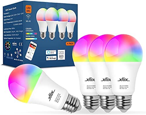 SAFE & SAVING: XFOX smart bulb fits medium base sockets in open fixtures designed for traditional 60-Watt incandescent A19 Bulbs.800 lumnes brightness, only 8.5 W consumption, save up to 80% energy. ETL/FCC certified.