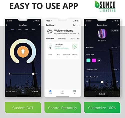 ✅ REMOTE CONTROL – Enhance your smart home with Sunco’s Smart Bulbs. Compatible with Amazon Alexa or Google Assistant for voice control to DIM, TURN ON/OFF or CHANGE THE COLOR.