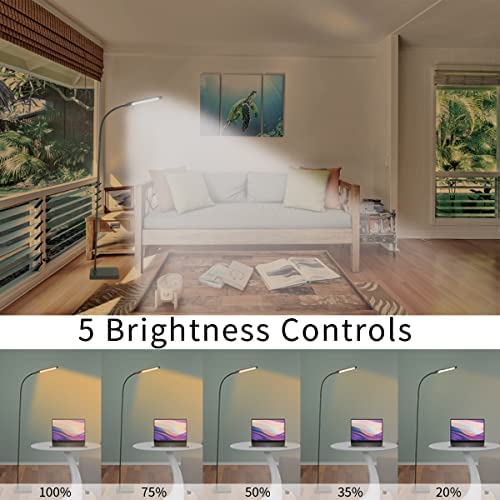 Syrinx 2 in 1 LED Floor, Desk Lamp, 5 Brightness Levels & 5 Colors Temperatures, Dimmable, Adjustable Gooseneck Pole Lamp for Living Room Office Bedroom – Black