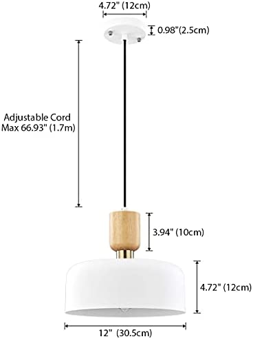 TeHenoo Modern Pendant Lighting,Large Pendant Lamp,Wood and Brass Accent,Adjustable Metal Hanging Light Fixture for Kitchen, Dining Room, White