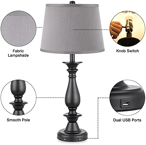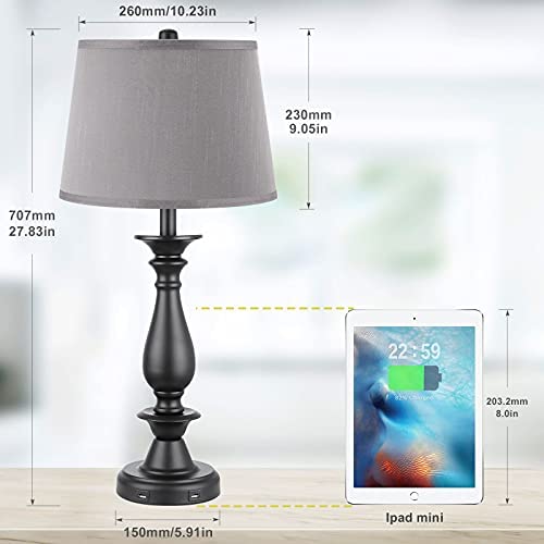 USB Table Lamp Set of 2 – Seealle Grey Modern Bedside Lamp, USB Bedside Table Lamps for Living Room with USB Charging Ports, 27.8” Desk Lamp Nightstand Lamp Table Lamps for Bedroom End Table