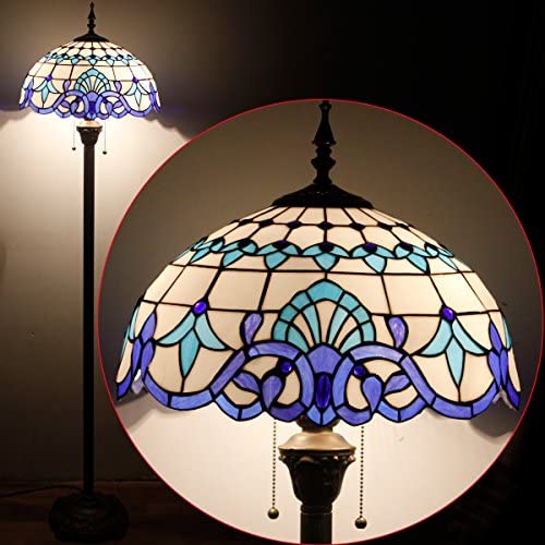 WERFACTORY Tiffany Floor Lamp Navy Blue Baroque Stained Glass Standing Reading Light 16X16X64 Inches Antique Pole Corner Lamp Decor Bedroom Living Room Home Office S003B Series